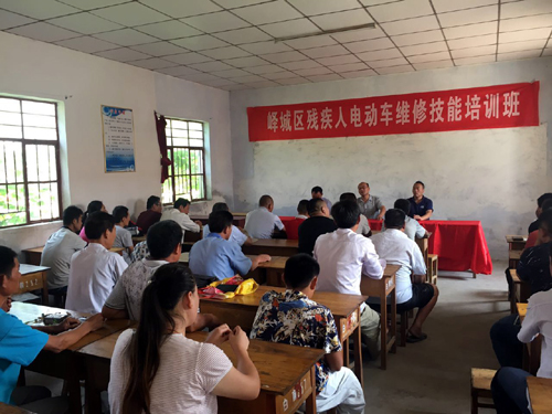 为进一步贯彻落实《残疾人就业条例》和市残联有关残疾人职业技能培训有关要求,结合扶贫攻坚工作总体要求,针对建档立卡贫困残疾人的培训需求,在逐户调查的基础上,峄城区残联于2017年8月9日,在枣庄市蓝天职业技术学校开办峄城区残疾人电动车维修技能培训班。峄城区残联相关负责同志、培训学校负责人出席了开班仪式。全区7个镇(街)残联专职干事、27名残疾学员参加了开班仪式。