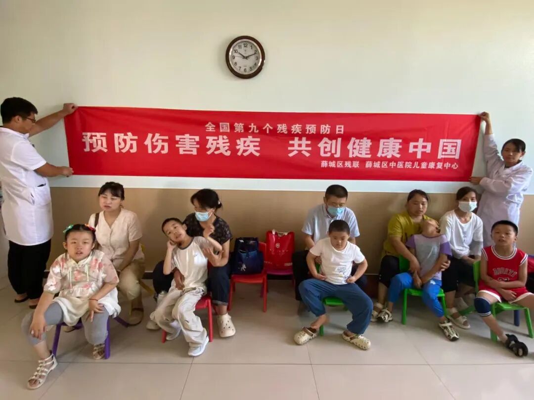薛城区在薛城区中医院开展以“预防伤害残疾 共创健康中国”为主题的残疾预防宣传教育活动,医护人员向在训儿童及其家长普及残疾预防知识,同时设置咨询站点,向群众发放残疾预防宣传手册,助力健康中国建设。